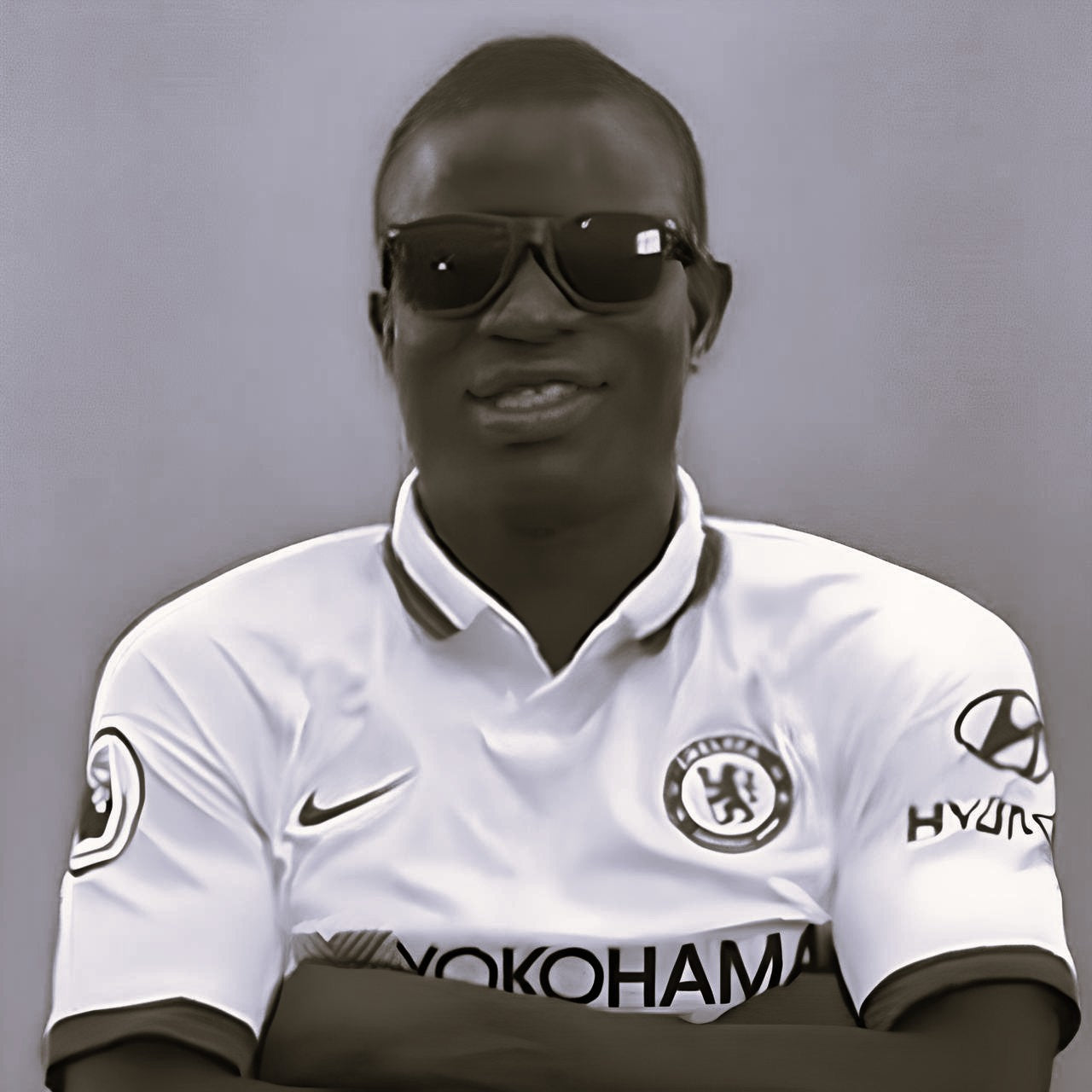 Cette image iconique capture N’Golo Kanté, lunettes noires et sourire discret, transformant la modestie en véritable aura de star. Le joueur qui court pour deux, respecté par tous, devient ici une légende du style autant que du terrain.